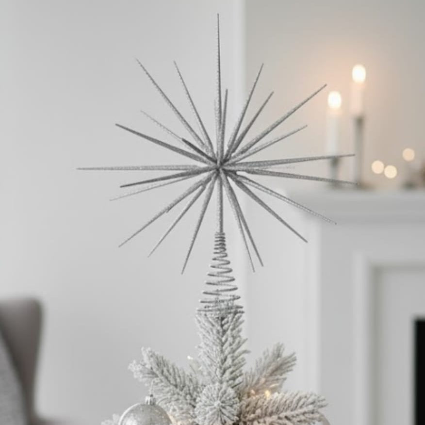 Shimmering with a soft metallic glow, the Silver Glow Topper is the perfect statement piece to crown your Christmas décor. Its refined design and radiant finish bring an effortless touch of luxury to your festive celebrations.