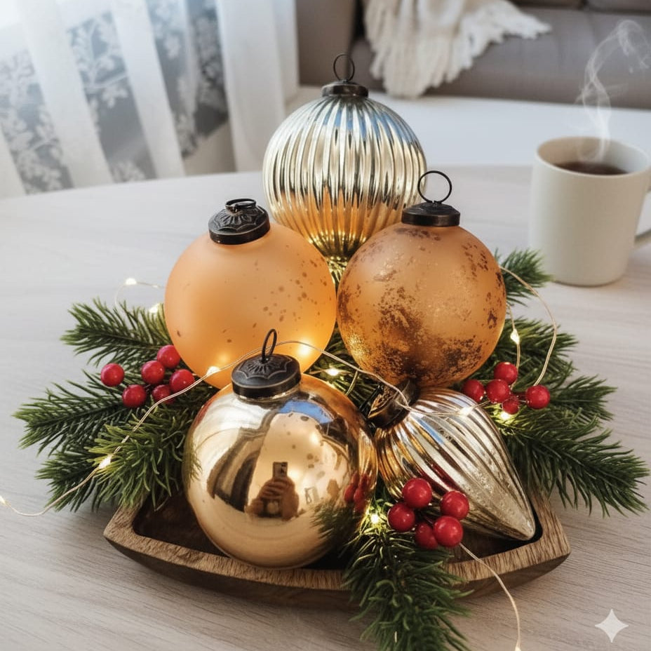 Grace your holiday tree with the Aurea Ornaments (Set of 5) — radiant glass baubles finished in a soft golden glow. Delicate, timeless, and effortlessly elegant, they capture the magic of Christmas in every shimmer.