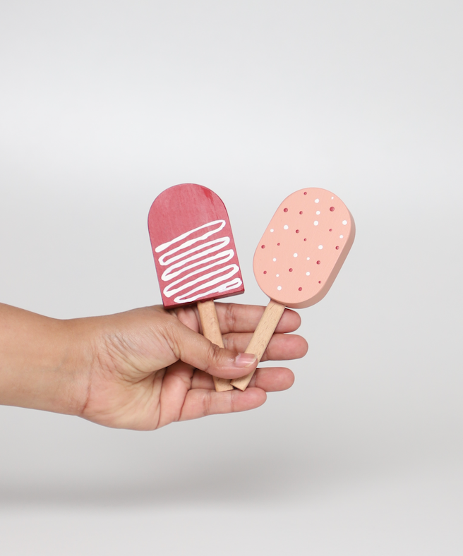 The base of the stand measures 22cm X 7cm and the popsicles measure 13cm X 5cm approximately.